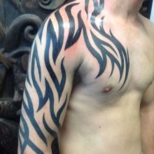 Ces types de croquis comprennent toutes sortes de compositions ethniques. Ils peuvent être combinés avec un tatouage sur l'épaule ou le dos. Ils se distinguent par l'utilisation de peinture noire.