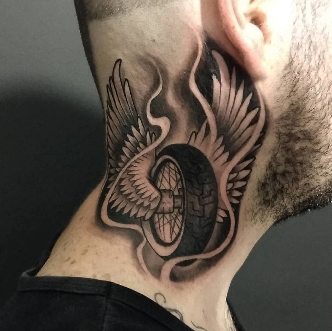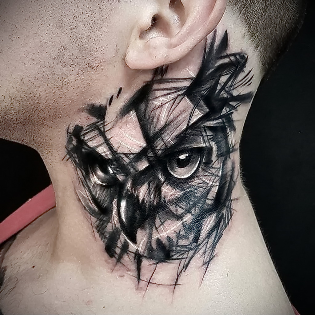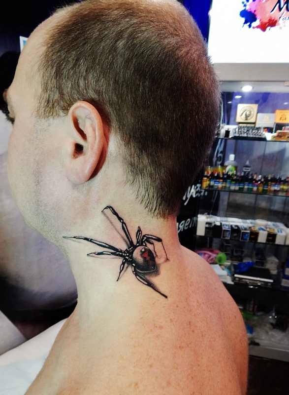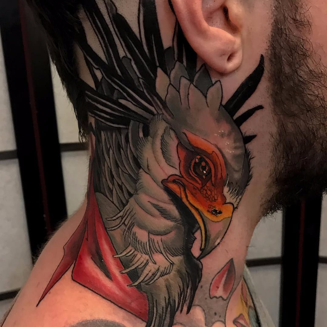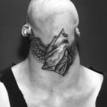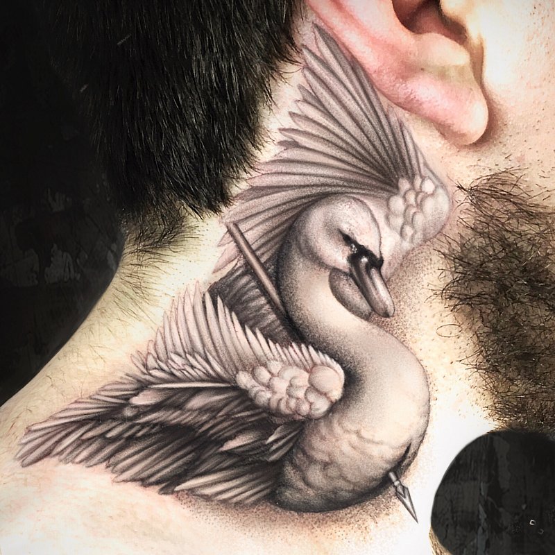 L'image au dos peut être combinée avec un tatouage au dos. Une solution extraordinaire est l'emplacement devant la gorge et la pomme d'Adam.