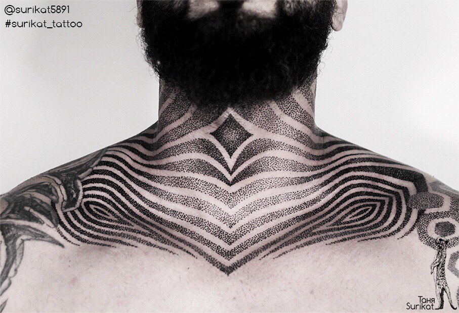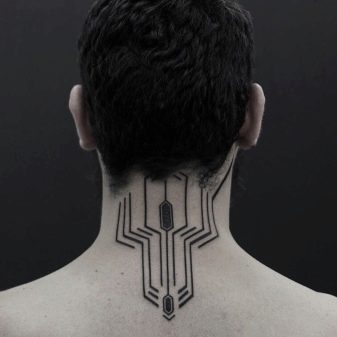 De tels tatouages ornent le corps d'un homme avec une vie ordonnée dans toutes les sphères. En plus de la géométrie structurelle et de la symétrie, une combinaison de stylistique avec blackwork, linework et dotwork est possible.