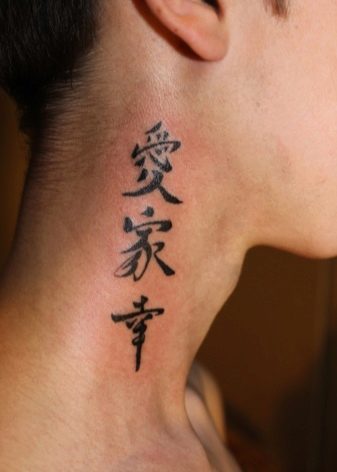 Les hiéroglyphes sont souvent appliqués sous la forme de caractères disposés verticalement (japonais et chinois). Traduits, ils désignent le trait de caractère principal ou indiquent le sens de la vie.