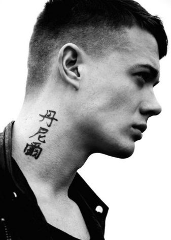 L'emplacement du tatouage varie. Dans la version traditionnelle, il est bourré à gauche ou à droite. Les gars aiment décorer cette partie du corps derrière l'oreille ou derrière avec une transition vers l'arrière de la tête.