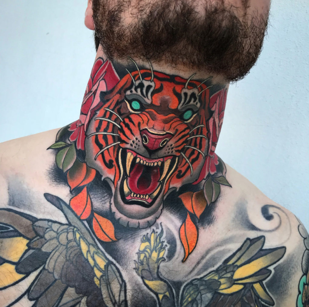 Il existe un risque de fuite d'encre lors du choix de cet emplacement. La peau du cou est plus fine et tous les travailleurs du ring ne peuvent pas travailler avec.