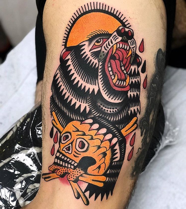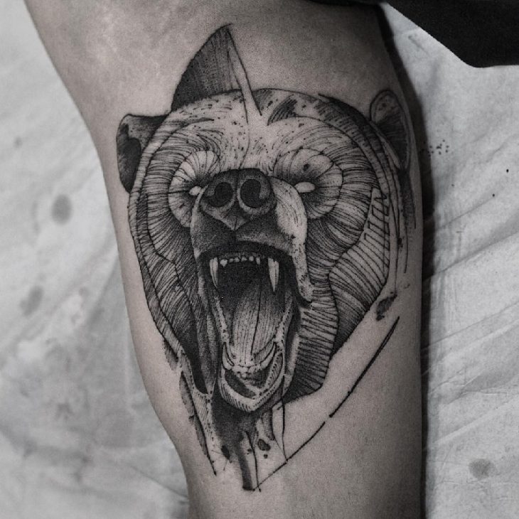 - Grizzly... Un symbole généralement accepté pour le tatouage en Amérique du Nord, utilisé par les peuples autochtones comme totem, esprit d'un clan ou d'une tribu.