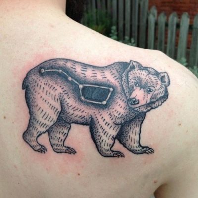 - Ursa Major et Ursa Minor sur fond de ciel étoilé... Ce tatouage est pour les romantiques et les voyageurs. Souvent, l'étoile polaire ressort particulièrement bien dans le dessin.