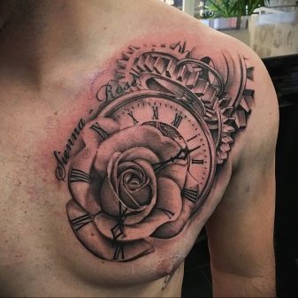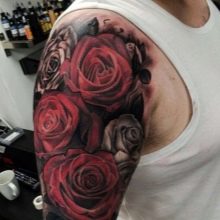 Il vaut la peine de dire qu'un tatouage de rose placé sur l'épaule indiquera qu'un homme portant un tel dessin est fiable et a un caractère persistant.