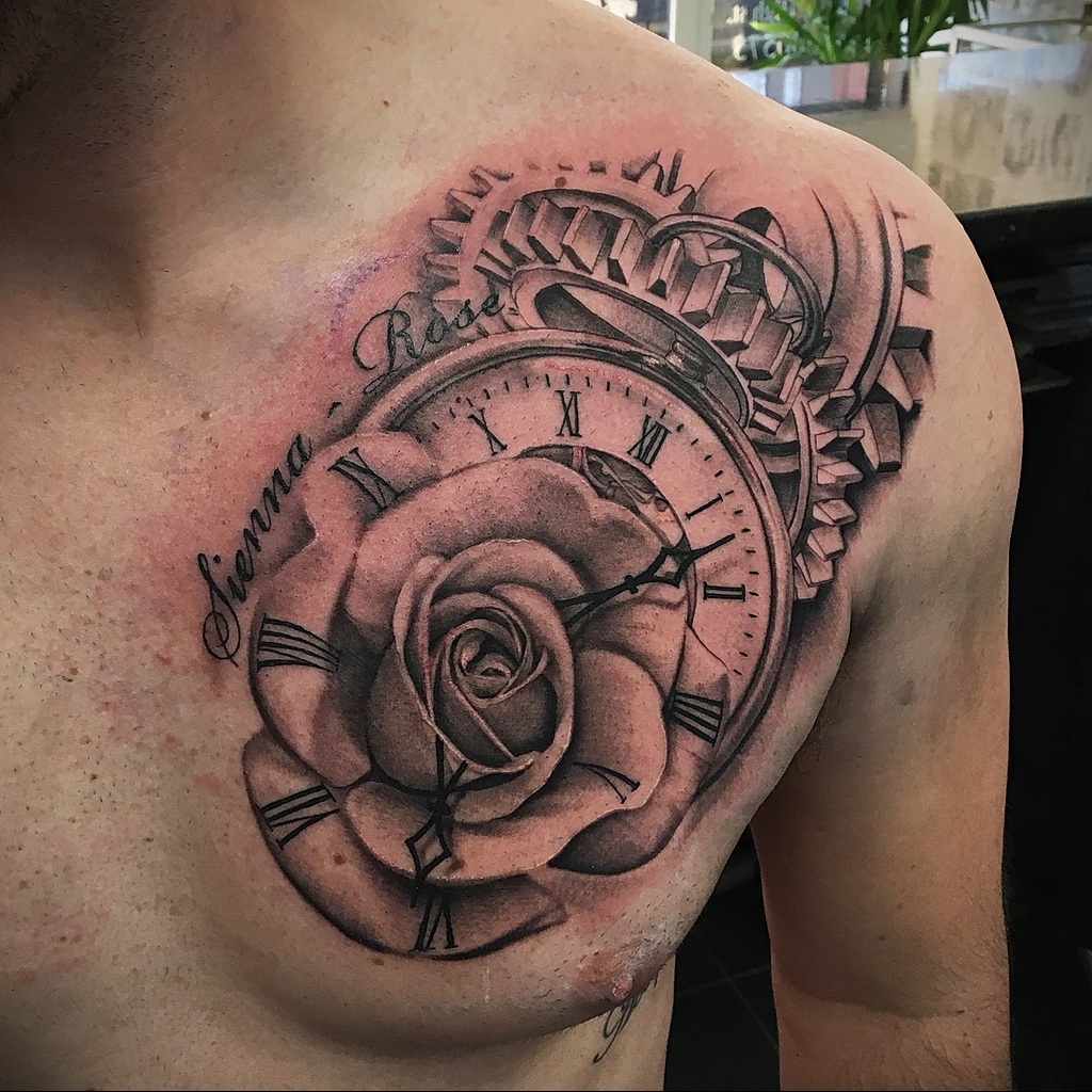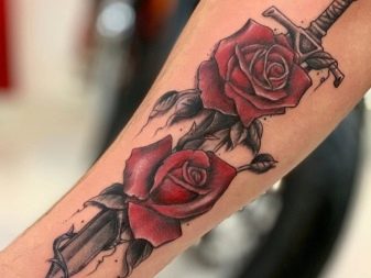 Souvent, la rose sur les tatouages masculins est complétée par d'autres objets, ils affectent également l'interprétation du tatouage.