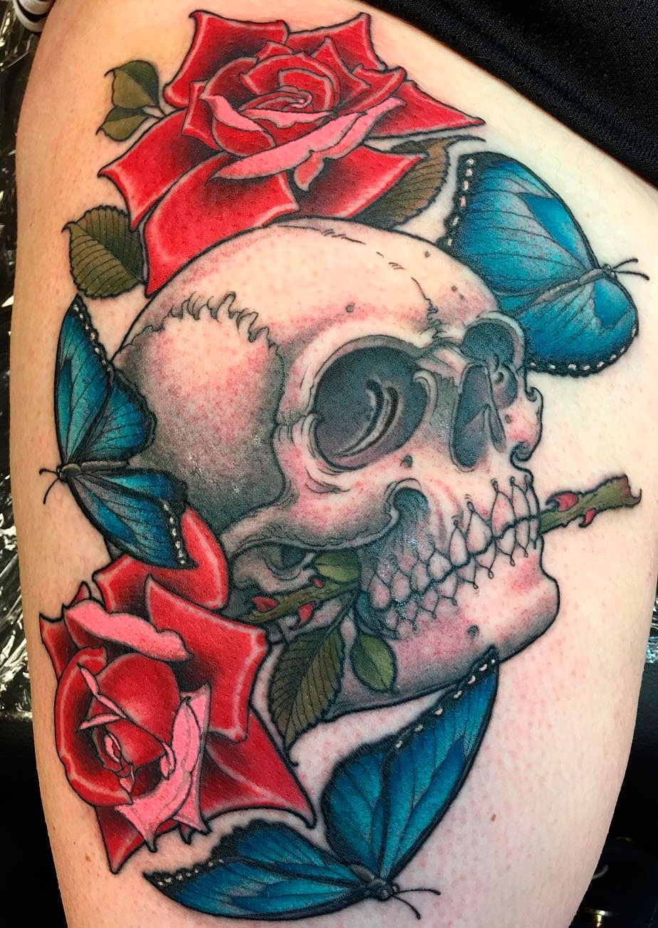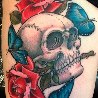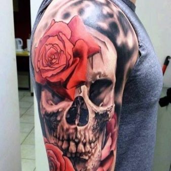 S'il y a un crâne sur le tatouage, à la place des yeux sur lesquels des roses sont représentées, cela témoigne de la haute estime de soi de l'homme et de sa confiance en soi, en ses propres pouvoirs.