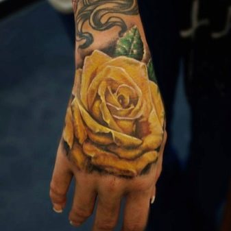 Le plus souvent, la rose est placée sur une partie de la main telle que le poignet. En règle générale, les dessins de cette zone ne diffèrent pas par leur échelle. Souvent, les tatouages faits à cet endroit sont mémorables pour une personne, ils sont associés à un événement de vie spécifique.