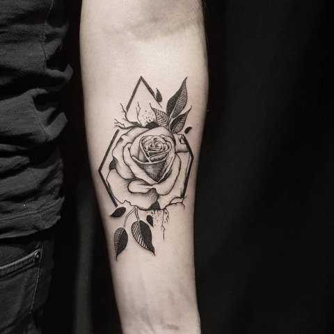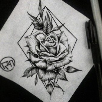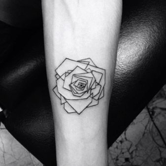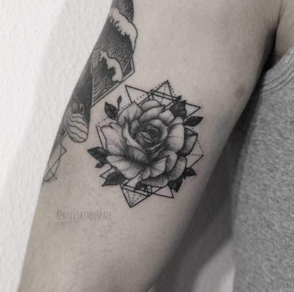 - Les tatouages de roses ont l'air très intéressants dans le style géométrie, qui se caractérise par la présence de différentes formes géométriques, courbures et plis.