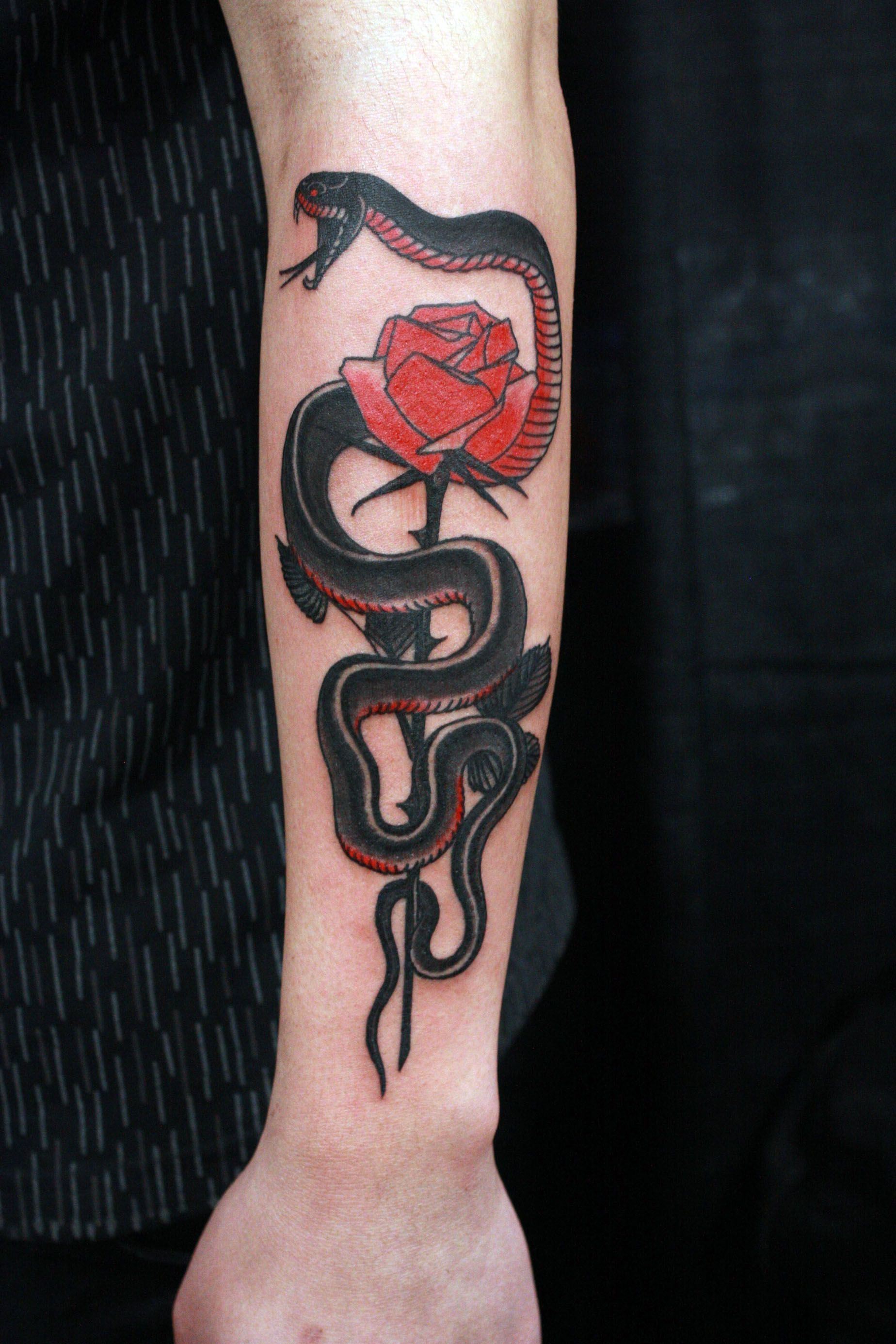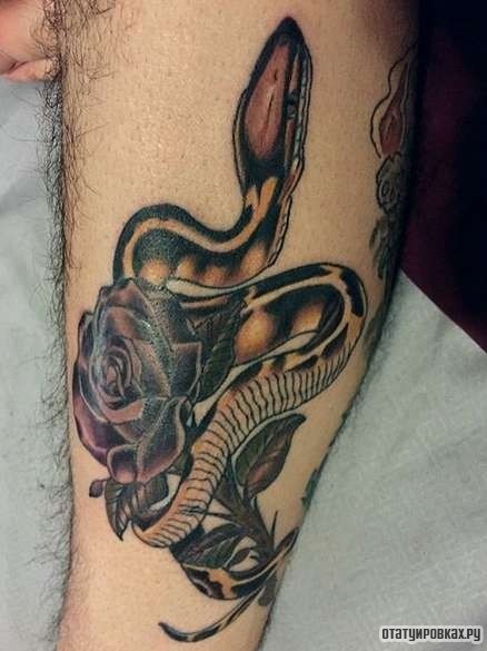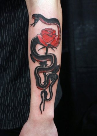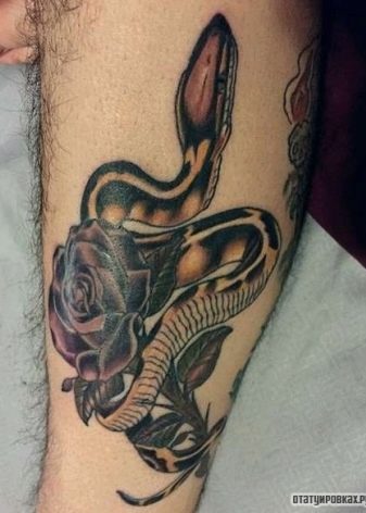 - Avoir un serpent sur un tatouage de rose indiquera qu'un homme portant un motif similaire succombe facilement aux tentations, il parvient rarement à résister, et il succombe à la tentation.