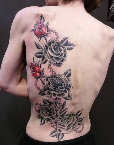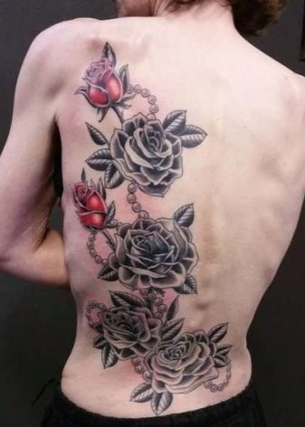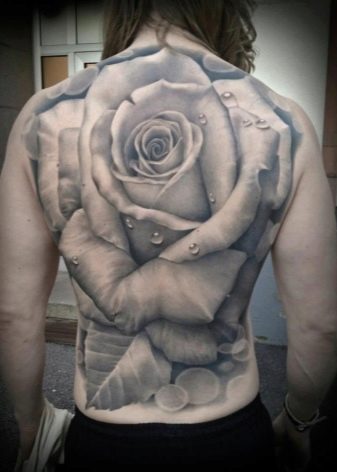 Dans la zone du dos, de grandes images sont généralement prises, occupant la majeure partie de la peau. De tels dessins indiquent généralement qu'une personne est amoureuse, sincèrement et fortement. Ses sentiments sont réels et, très probablement, resteront avec lui jusqu'à la fin.