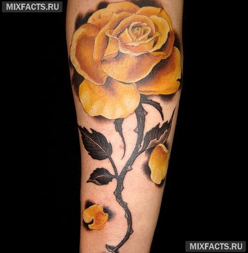 Au XVIe siècle, l'image de cette fleur était souvent placée sur le corps humain, qui était voué à la peine de mort, c'est-à-dire qu'un tel dessin portable pouvait être considéré comme une sorte de stigmate. Cependant, au fil du temps, la rose a perdu un sens si sombre et a commencé à évoquer des associations avec la capacité de pardonner et une attitude miséricordieuse envers les autres.
