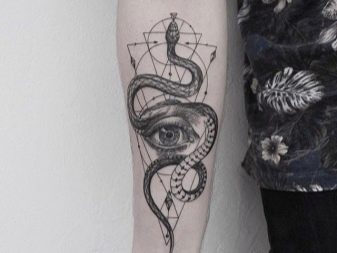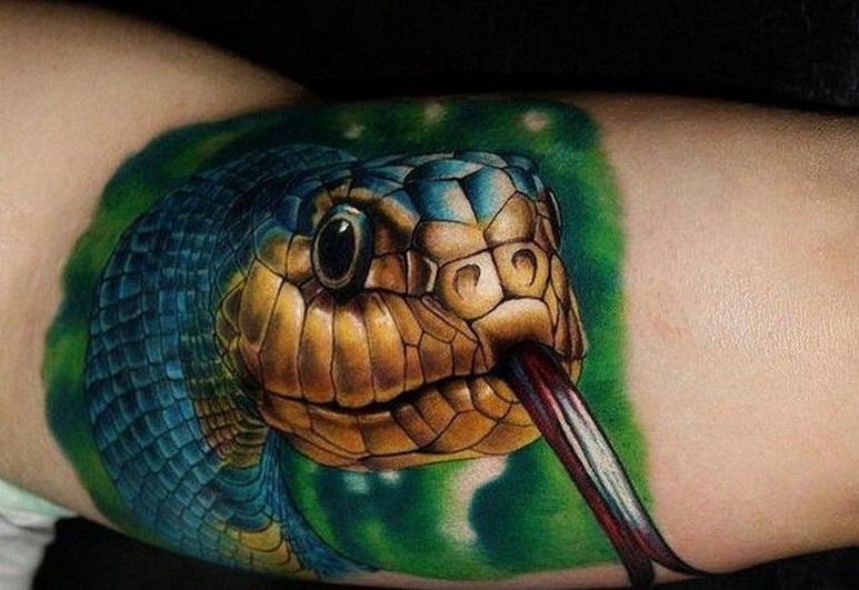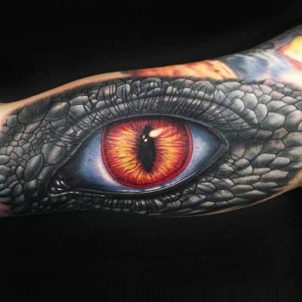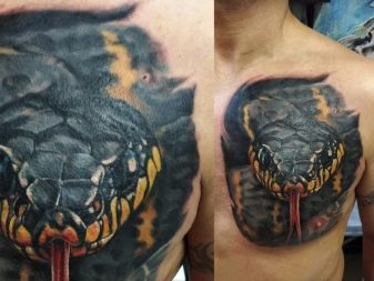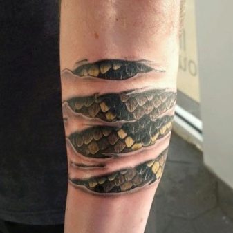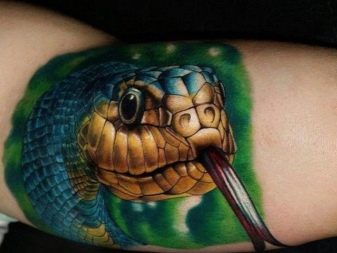 Cependant, si dans le réalisme le serpent est souvent représenté en entier, le reptile organique se félicite des macro-esquisses. Par exemple, il peut s'agir d'un dessin d'une écaille de serpent, d'un énorme œil de serpent.