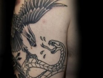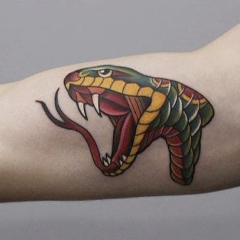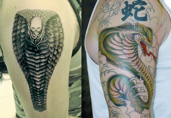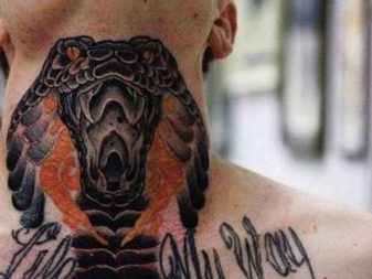 Le cobra royal représente la richesse. Cependant, en plus de montrer le statut social, cela peut être un symbole dangereux et autoritaire. Une telle image sur le corps d'un homme parle d'une certaine position de vie et d'une vision non standard de la vie.
