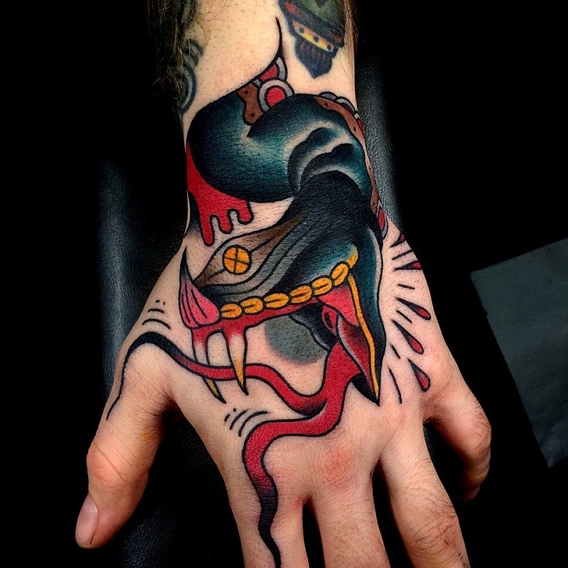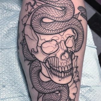 Quelqu'un aime les croquis avec un reptile prédateur enlaçant un crâne en décomposition. D'autres aiment l'image d'un serpent qui s'enroule et mord même la main d'un homme, comme en témoignent les gouttes de sang qui coulent.