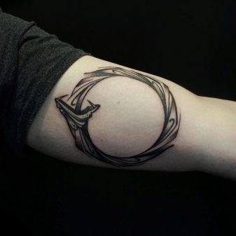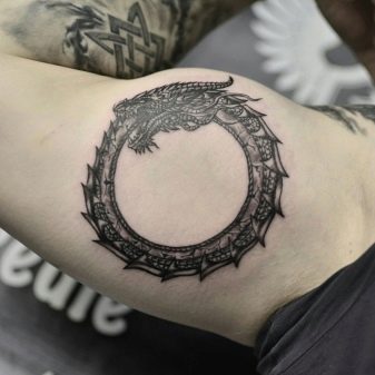 Dans certains cas, il est représenté comme un signe de l'infini, ce qui est très impressionnant. Dans la technique des "manches", il peut être combiné avec des crânes, des vagues, des oiseaux, des démons.