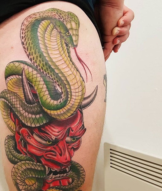 En plus des autres parties du corps, le serpent est également placé sur la cuisse, où il n'est pas moins impressionnant. Quelqu'un associe cela à une composante intime. Cependant, le message global est lié à la technique choisie et à ses ressources. Par exemple, si c'est Chicano, cela signifie la nature cyclique du monde. Pour la vieille école, la signification tourne autour de l'amulette.