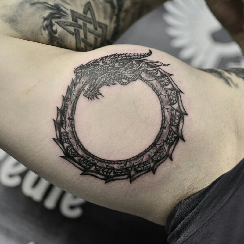 L'uroroboros (dragon-serpent) représenté a une signification sacrée. Sa désignation est souvent associée à l'alternance de création et de destruction.