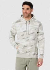 Une caractéristique du modèle est un imprimé camouflage. Le sweat est à usage quotidien. L'échantillon est fait de tissu éponge français doux et léger pour une protection contre le froid, des poignets et un ourlet côtelés. Pour « se cacher » du vent, vous pouvez resserrer le lacet sur la capuche. Exécution possible en couleur olive ou blanc neige, une excellente option pour créer un look urbain