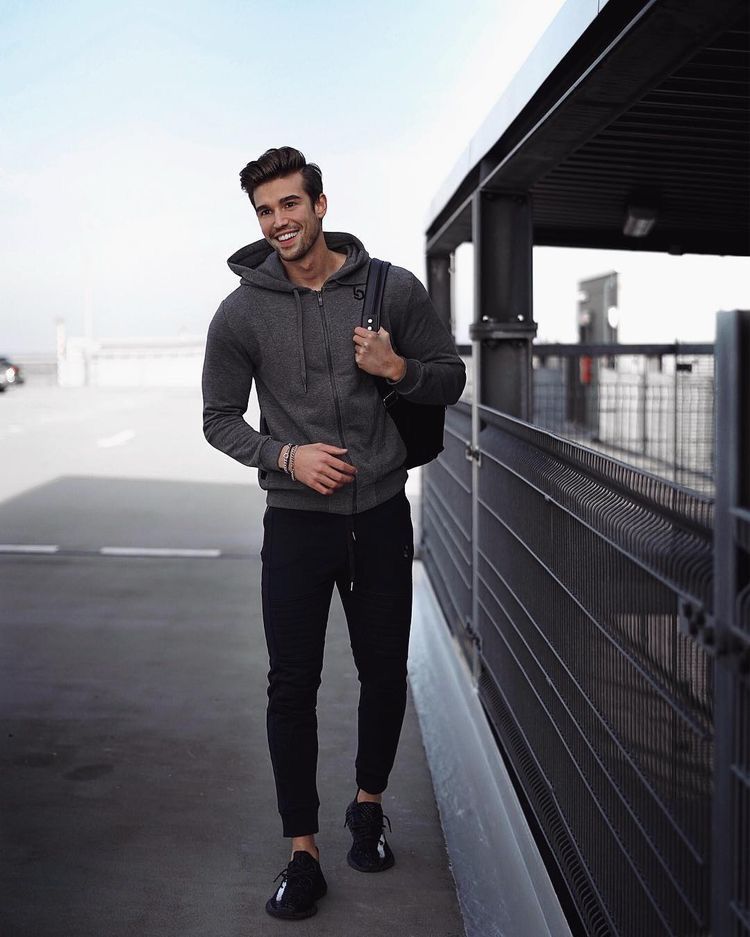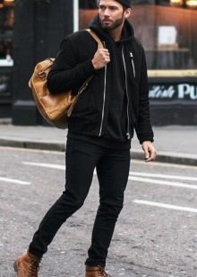 Il est possible de combiner différents styles dans un look masculin. Par exemple, un nœud moderne et élégant permet de combiner une chemise stricte, un pantalon chino et un sweat-shirt de sport. Mais en même temps, assurez-vous que les poignets et les étagères de la chemise sont visibles sous le sweat-shirt, la chemise doit donc être longue. Les baskets conviennent comme chaussures pour ce look de jeunesse inhabituel, et un sac à dos en cuir peut devenir un accessoire.