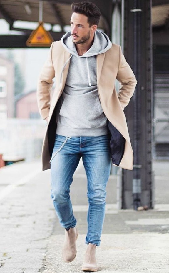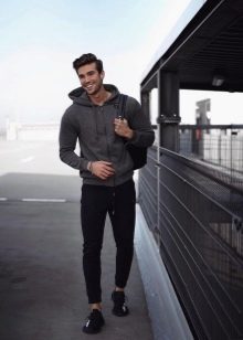 - En même temps, vous ne devriez pas acheter un sweat-shirt trop ample., c'est-à-dire une taille plus grande - le jeune homme y aura l'air un peu comique. Ainsi, le sweat-shirt doit reposer librement sur la silhouette.