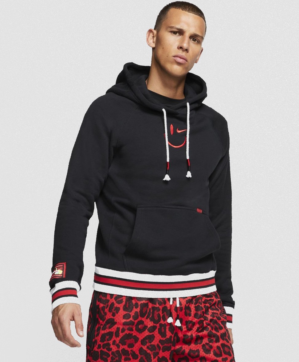 Sweat à capuche spécialement conçu pour les fans de la NBA. La pièce est faite dans le style d'un uniforme d'entraînement professionnel. La matière première pour la création du produit était un tissu tricoté à double tissage de poids moyen, qui apporte douceur et confort à la forme. Il y a aussi des poches kangourou, le modèle peut être réalisé en rouge ou en noir.