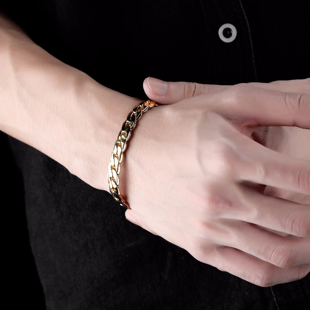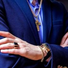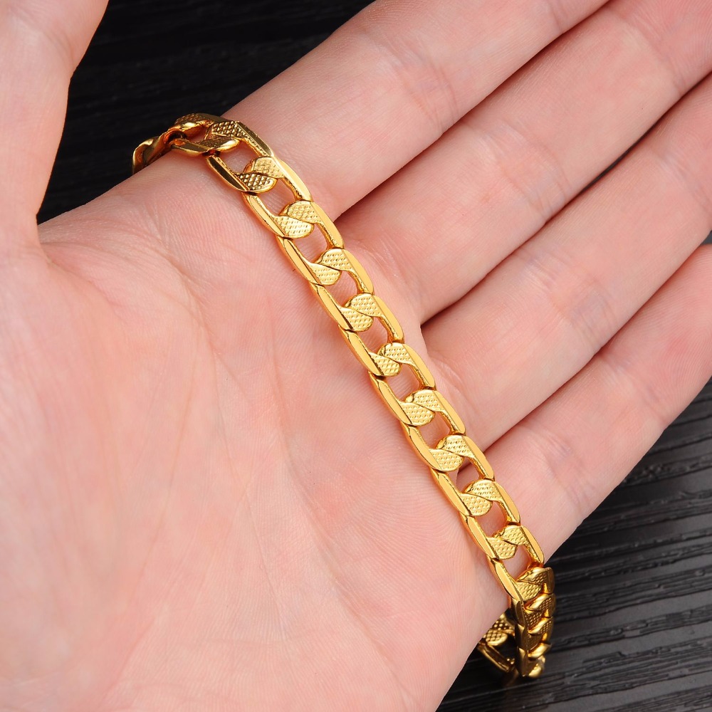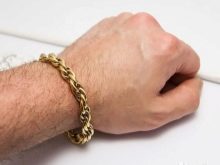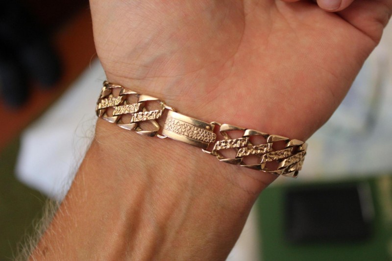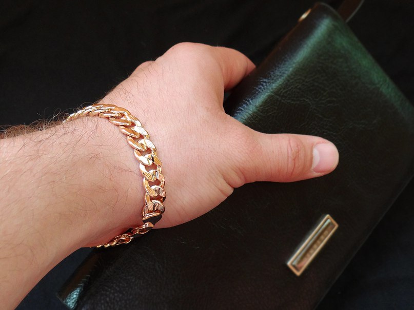Eldeki altın zincirler, klasik tarza bağlı kalan olgun yaştaki erkekler tarafından en çok tercih edilen zarif ve pahalı mücevherlerdir.... Bu tür aksesuarlar, sıkı bir iş imajına mükemmel uyum sağlar. Altın eşyalar korozyona ve agresif kimyasallara maruz kalmaz. Ancak, önemli dezavantajları kabul edilir mekanik strese karşı savunmasızlık.