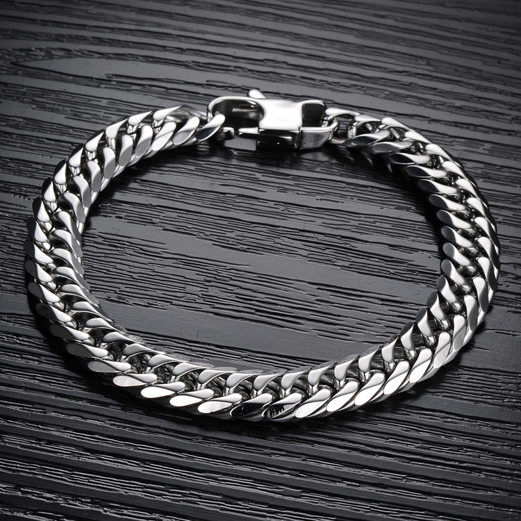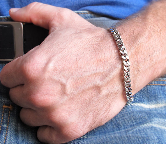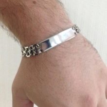Erkek el zincirleri Cerrahi çelik - hemen hemen her yaştan erkekler arasında popüler olan ucuz ama çekici ve şık mücevherler. Cerrahi çeliğin muhteşem parlaklığı, görsel olarak lüks platin ve asil paladyumun parlaklığını anımsatır. Bu tür mücevherler korozyondan, neme maruz kalmaktan, tuzlardan, agresif kimyasallardan, şok yüklerinden korkmaz. Ayrıca, onlar hipoalerjenik, tahrişe ve cilt alerjik reaksiyonlarına neden olmaz.