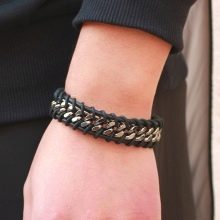 Başka bir uygun seçenek, hakiki deri şeritlerle süslenmiş çelik bilezik zincirleri olabilir.