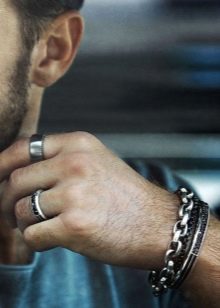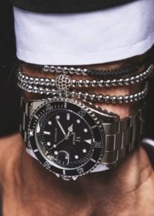 Erkek zincir bileklik alırken zaten var olan takı ve aksesuarların özelliklerini dikkate almalısınız. Günlük hayatta bir erkek bir yüzük, boynuna bir zincir, bir saat veya başka ürünler takıyorsa, satın alınan zincir bilezik bunlarla tam olarak eşleşmelidir. Yani, Gümüş ve altın veya pahalı ve ucuz mücevherlerin tek bir görüntüdeki kombinasyonu, kötü tadın bir tezahürü olarak kabul edilir.