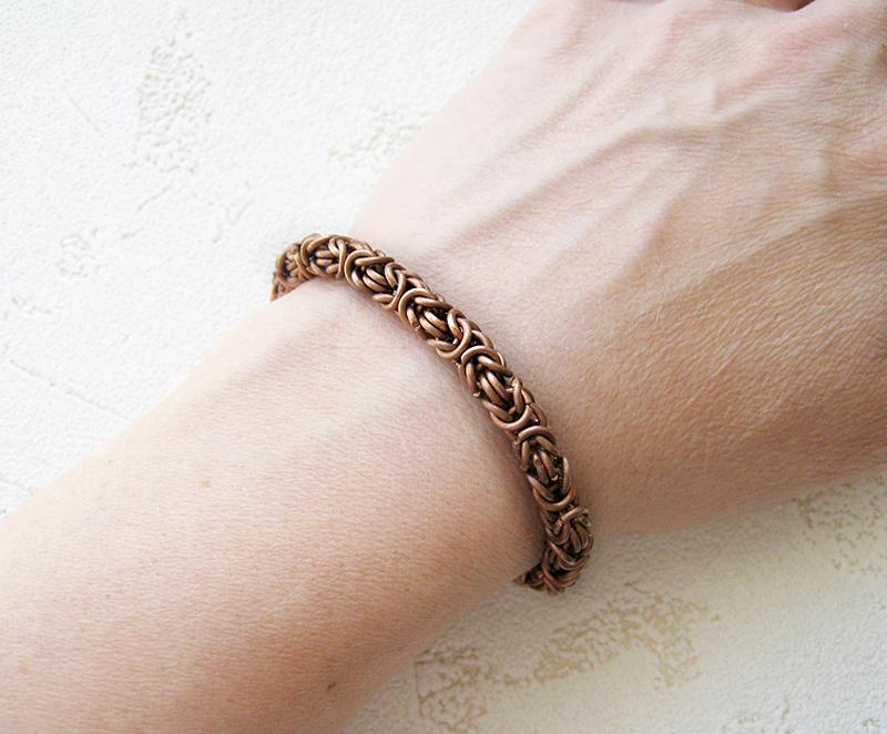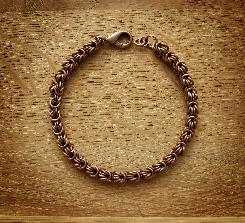 Bakır zincir bilezikler, tıbbi özellikleriyle tanınan orijinal, zarif ve ucuz mücevherlerdir. Bu tür ürünler belirgin bir kırmızımsı-kırmızı renk tonuna sahiptir, kolayca deforme olur, oksijenin etkisi altında oksitlenir ve sonunda mavi-yeşil bir çiçekle kaplanır.Aynı zamanda, bakır zincir bilezikler oldukça çekici bir görünüme sahiptir ve bu da neredeyse her erkek görünümüne organik olarak uymalarını sağlar.