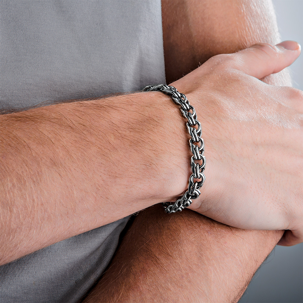 Gümüş erkek el zincirleri, genç erkeklerin yanı sıra spor ve casual tarzı sevenlerin de gözdesi olan pratik ve şık ürünlerdir. Yüksek kaliteli gümüş ürünler, yüksek mukavemetleri, korozyona, kimyasal ve mekanik strese karşı dirençleri ile ayırt edilir. Gümüşün bir özelliği de kararma eğilimidir.