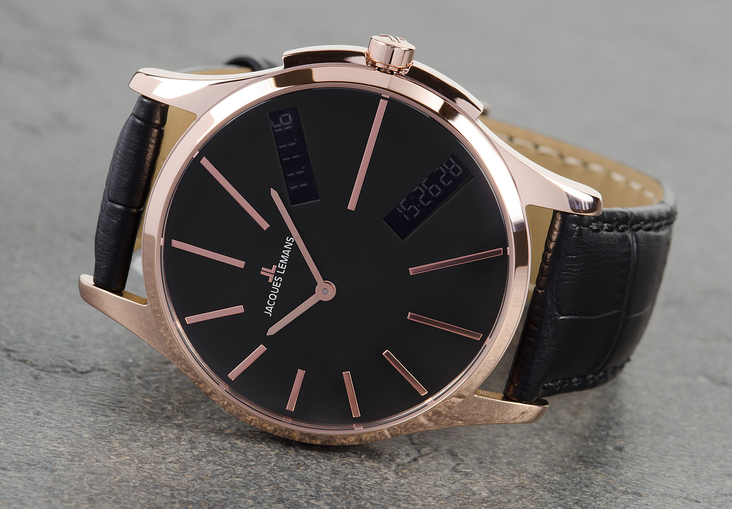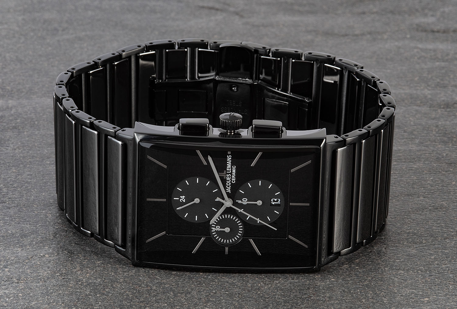 - Jacques Lemans 1-1674А - çelik kasalı ve siyah kadranlı kuvars saat. Bu modelin bileziği çelikten yapılmıştır, toka aynıdır. Dayanıklı camlı su geçirmez bir kronometredir. Ellerde floresan bir arka ışık var. Saat, geçerli tarih ve saati doğru bir şekilde görüntüler.