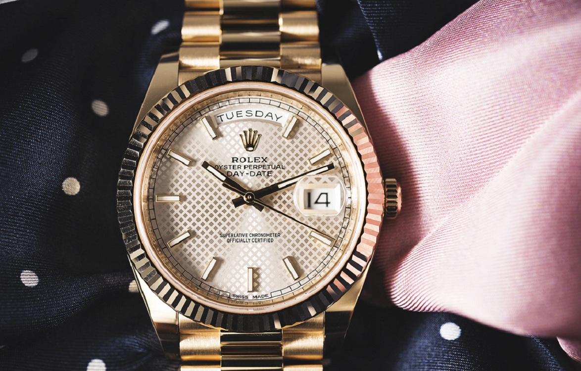 - Rolex gün tarihi Saf altın sarısı kadran ve beyaz metal bilezikten yapılmış muhteşem bir saat.Yuvarlak kadran, yalnızca en yakın saniyeye kadar olan zamanı bilmekle kalmaz, aynı zamanda geçerli tarihi de belirlemenizi sağlar.