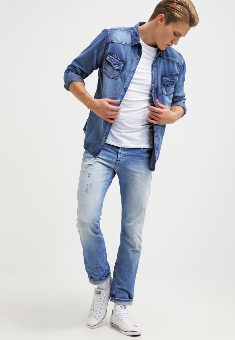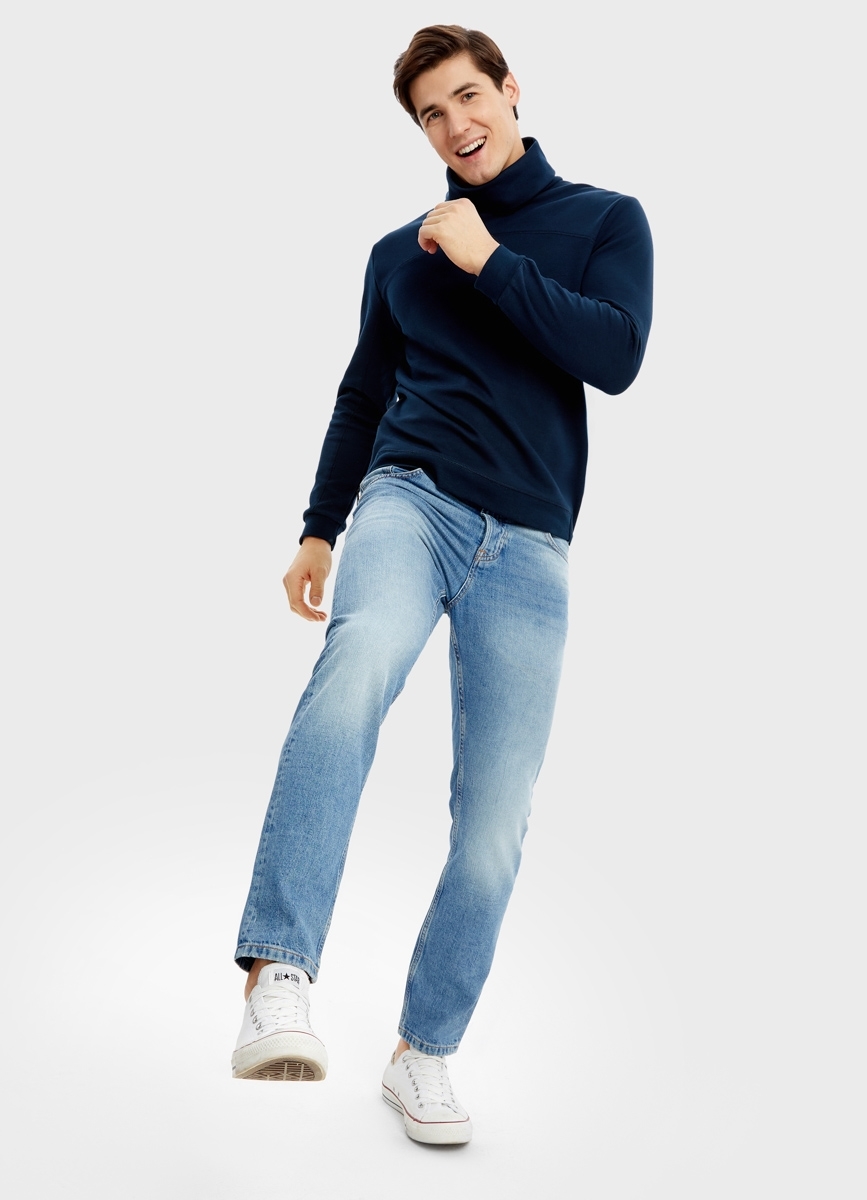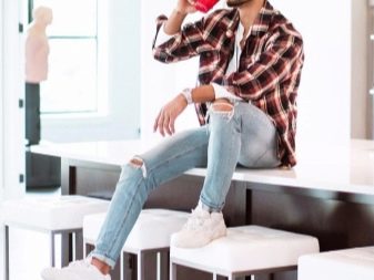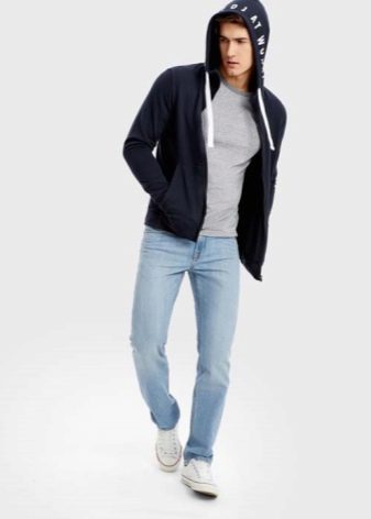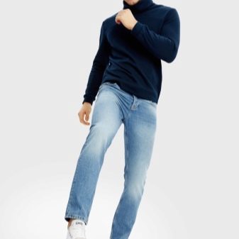 Erkekler klasik "haşlanmış" olanlardan bile daha önce mavi kot pantolon giymeye başladılar - bu, günümüze olan ilgisini kaybetmeyen ilk temel denim modellerinden biri. Bu pantolonların büyük bir artısı, çok yönlülüğü ve çok yönlülüğüdür. Her yaşta, statüde, farklı tarzların taraftarları için harikalar. Maviyi birleştirmek oldukça basittir - hem nötr tonlarda hem de parlak veya pastel tonlarda harika görünür. Mavi kot pantolon, sıkı bir kıyafet kuralının yokluğunda, bir yürüyüşte, bir tarihte ofiste görülebilir.