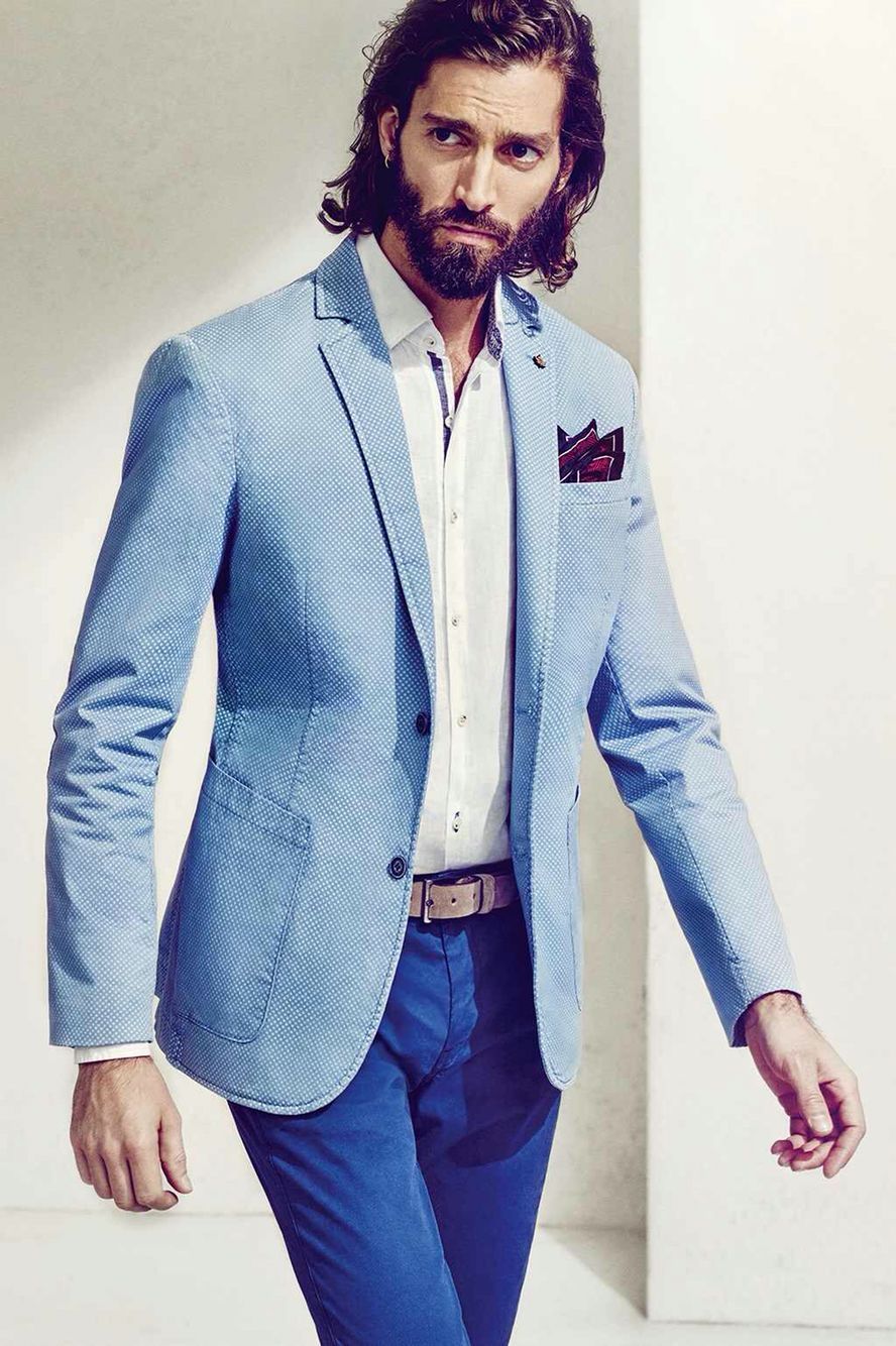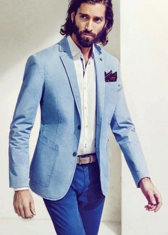 - Açık mavi. İyimser topluluklar için uygun, kalabalığın arasından sıyrılmayı seven erkekler. Bu tonu birleştirmek kolay değil, en uygun düetler beyaz, gri, siyahtır.