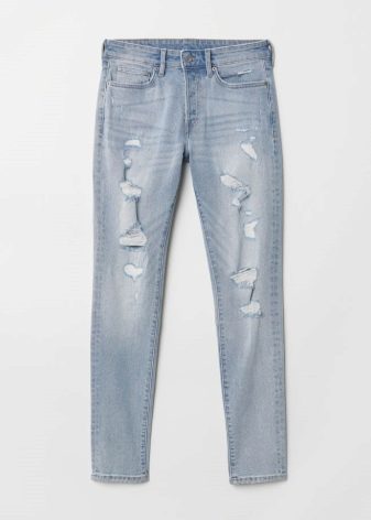 Stillerin ve dekoratif kaplamaların seçimi çok büyük, her tür figür, farklı boyut ve stil için kot pantolon alabilirsiniz: katı düz, yırtık, daralmış.
