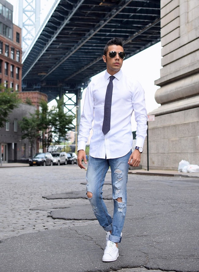 Blue jeans ile uyumlu bir görünüm oluştururken yanılmamak için, bir dizi kuralı dikkate almak gerekir: