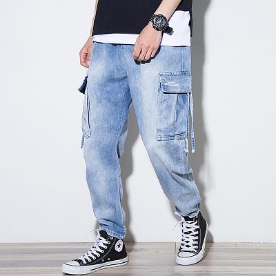 - Afgan dili. Bu model orijinaldir, çiçek açanları andırır, ideal olarak özgür, genç bir görüntüye uyar. Bu modeldeki pantolonlar geniştir ancak alta doğru daralır. Bedeni doğru orantılara sahip olmayanlar için büyük erkekler için bu tür kot pantolonları almamalısınız. Ayrıca böyle bir model bacakları görsel olarak kısaltır.