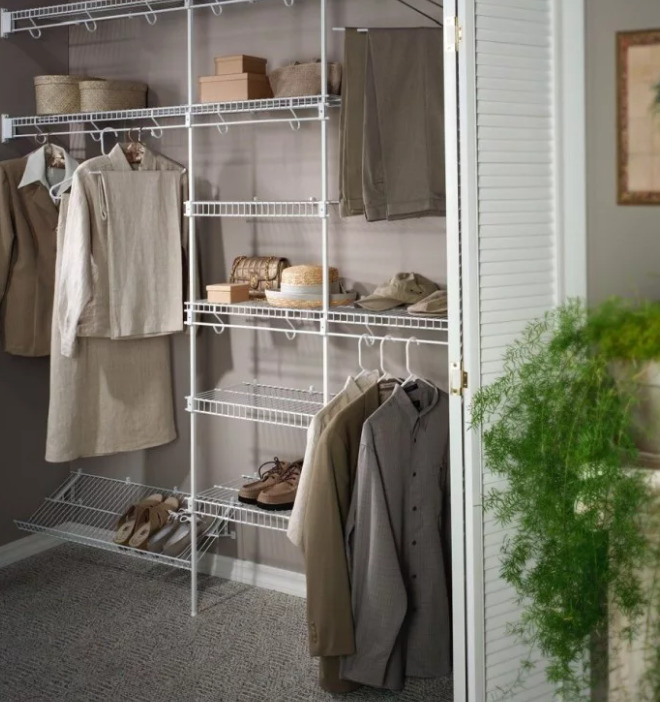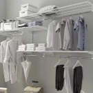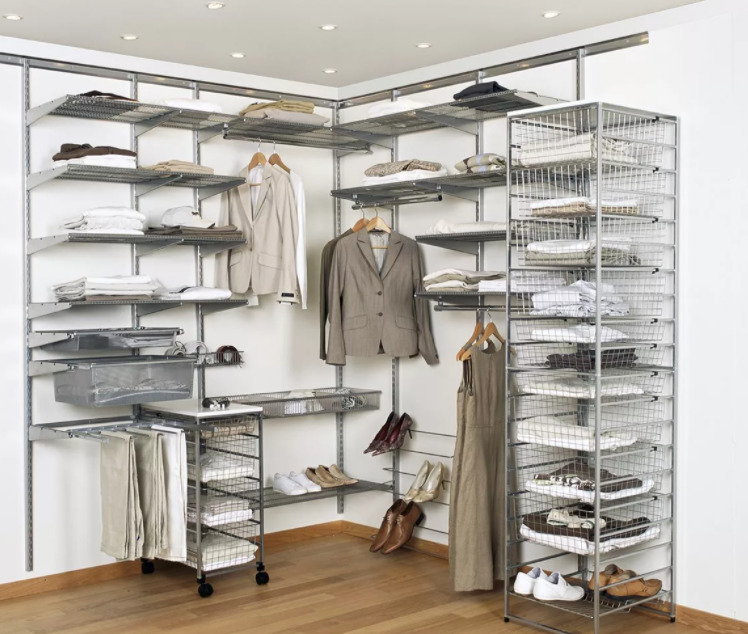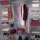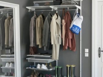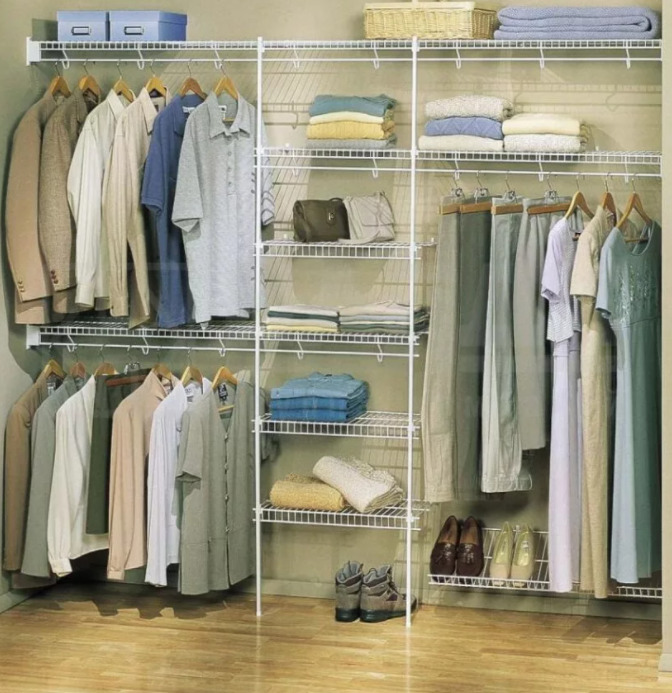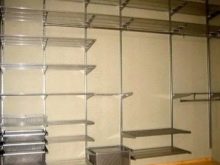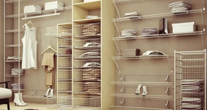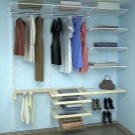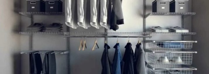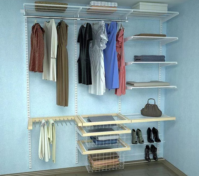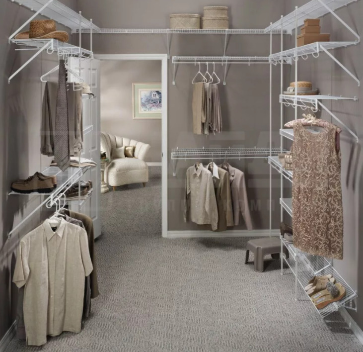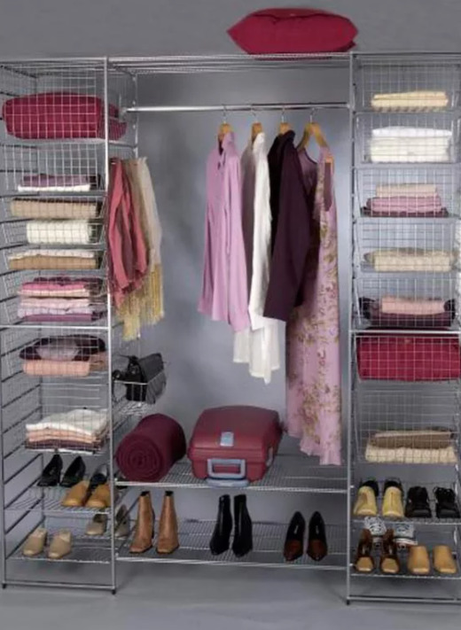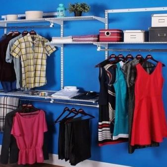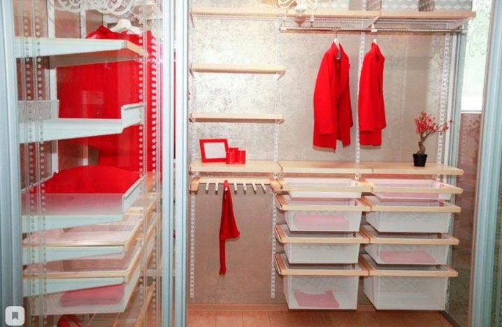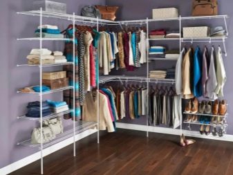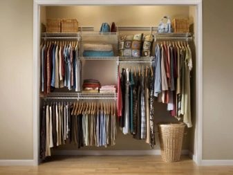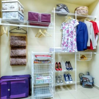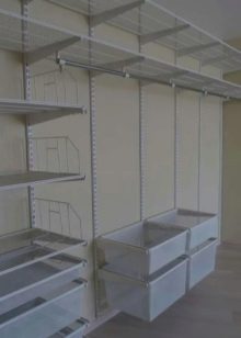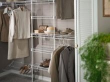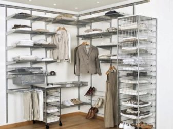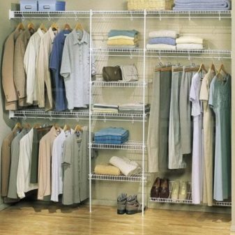 - Sınırlı bir alanda giyinme odasının düzenlenmesi büyük olasılıkla ağ ve düzenli raflar, raflar kombinasyonu şeklinde.