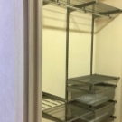 - Alüminyum. Hafif ve dayanıklı metal, duvarlarda veya diğer desteklerde minimum baskı sağlar, paslanmaz ve montaj sırasında kolayca ayarlanabilir. Dezavantajları sınırlı bir uygulama kapsamını içerir - oksitlendiğinde metal şeyleri lekeleyebilir, bu nedenle sepetler ve diğer dolgu elemanları ondan yapılmaz. Çerçevenin bir parçası bozulursa değiştirilmelidir - alüminyum parçalar onarım için uygun değildir.