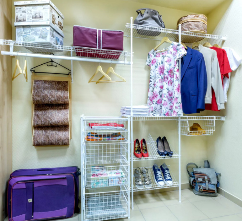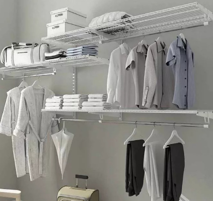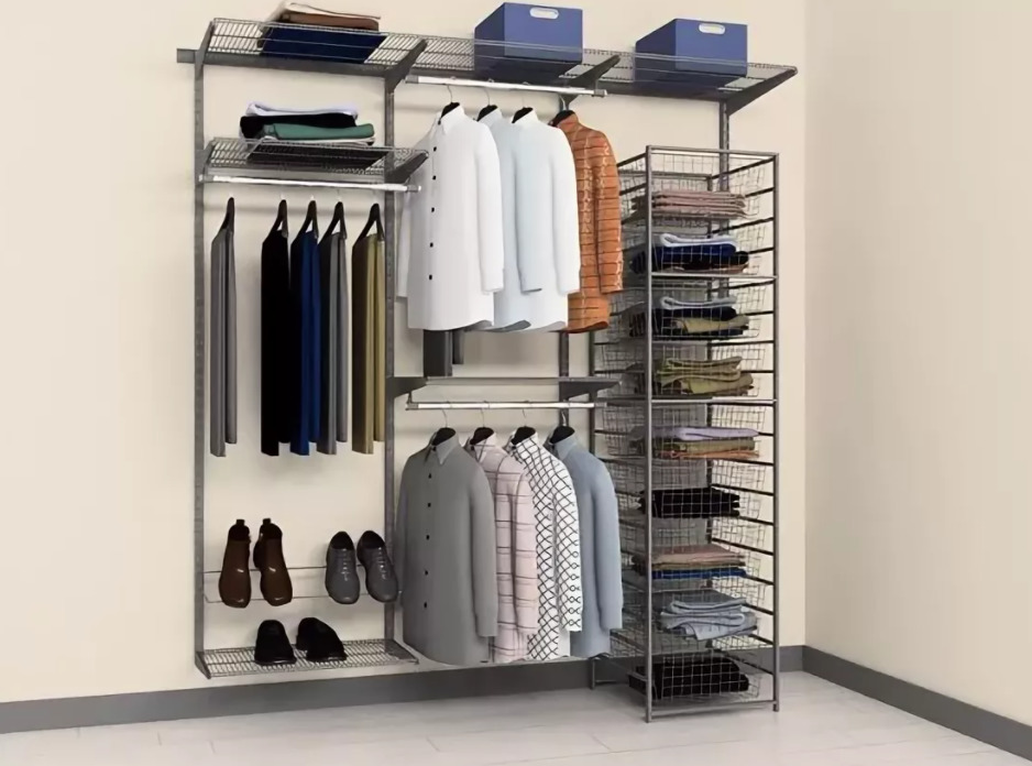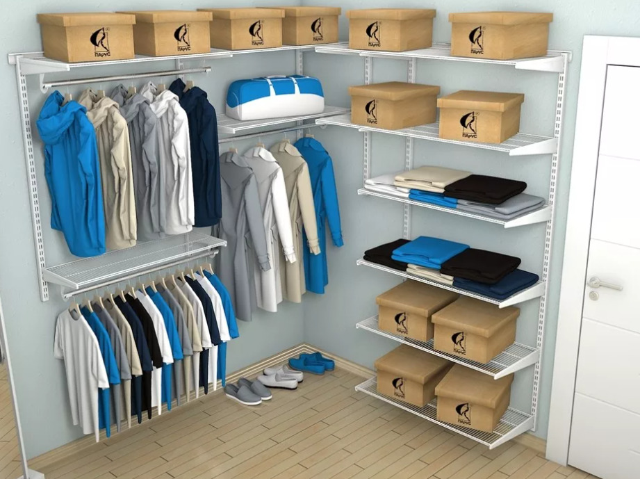 Eşyaları saklamak için modern raf sistemleri, çeşitli seçeneklerle ayırt edilir. Giderek daha sık, olağan çerçeve yapıları ve gömme dolaplar yerine hafif ve mobil modüler çözümler kullanılmaktadır. Hasır gardırop sistemleri, sahibinin isteğine göre dolumu değişebilen çelik bir raftan oluşur. Kafes yapılı raflar, ayakkabı rafları, sepetler metal bir çerçeveye sabitlenmiştir. Bu tür çözümler, havanın serbest dolaşımını engellemez ve istenen öğelerin aranmasını büyük ölçüde kolaylaştırır.