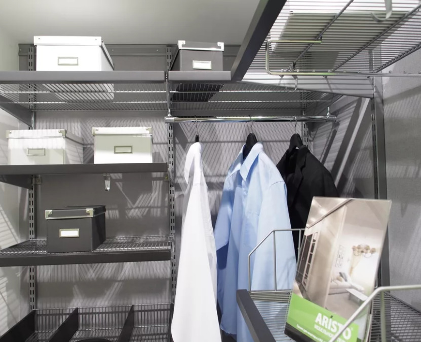 - Elfa. Piyasadaki en eski markalardan biri, 60 yılı aşkın süredir file gardırop sistemlerini başarıyla oluşturmakta ve uygulamaktadır. Şirket, bileşenlerin yerleştirilmesine rasyonel yaklaşımıyla ünlüdür, sistemleri geniş, ergonomik ve konforludur. Giyinme odası beğeninize göre monte edilebilir veya hazır set olarak satın alınabilir.