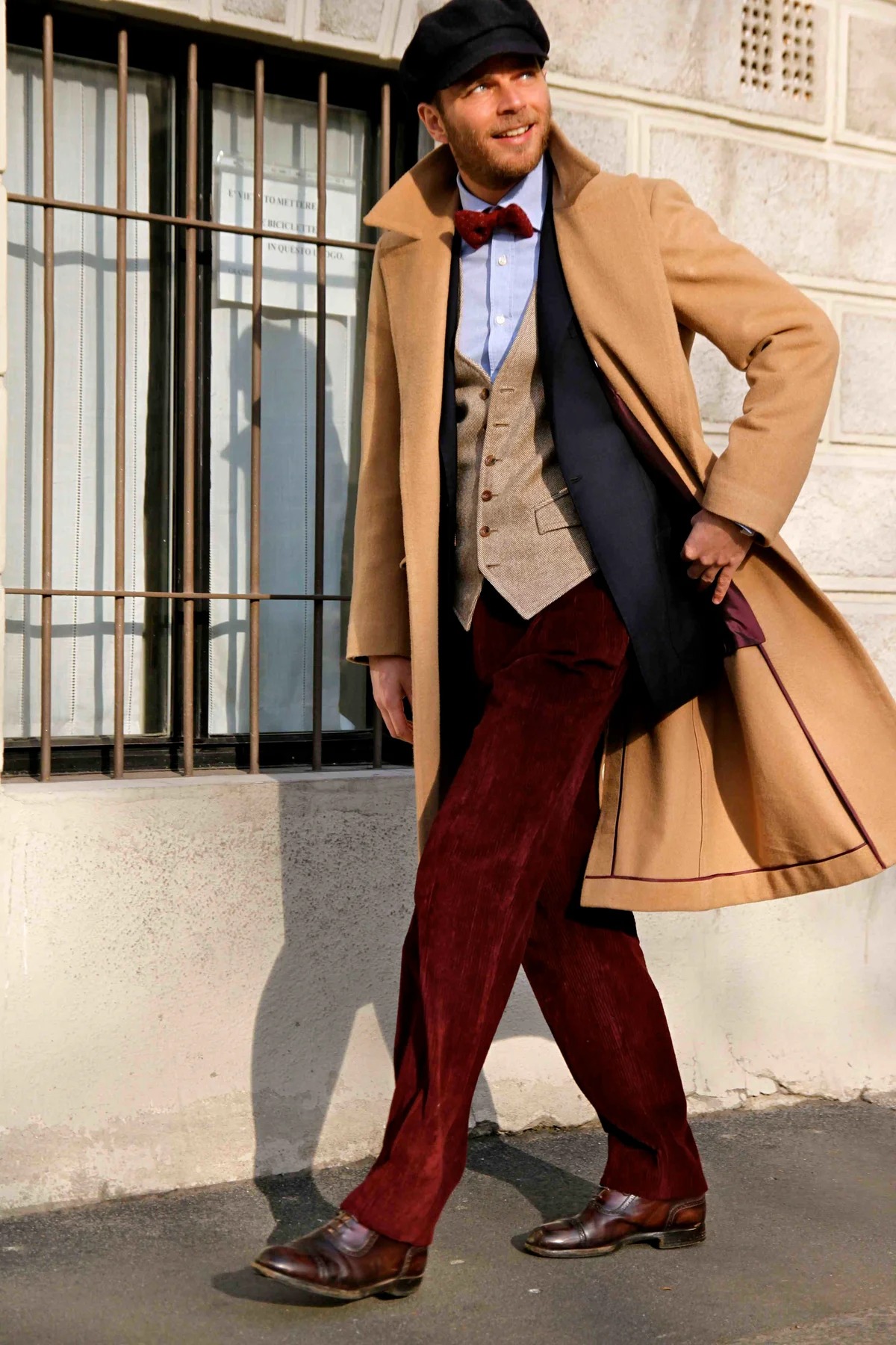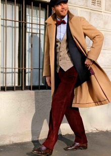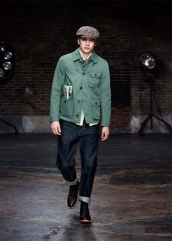 Balıksırtı desenli sekiz parça, sonuna kadar büyümek istemeyen modern bir erkeğin imajına uyumlu bir şekilde uyar. Onu kalın bir bordo yün atkı, gri-yeşil bir blazer ile tamamlayabilir veya gri bir kazak, tek göğüslü İngiliz ceketi ve katlanmış mavi kot pantolon ile giyebilirsiniz. Kaba kırmızı-kahverengi çizmeler, bir dizüstü bilgisayar kabadayısının görüntüsünü tamamlayacaktır.