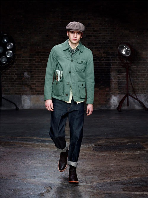 Bir erkeğin tatilde ihtiyaç duyduğu şey, savaş sonrası Britanya'nın ruhuna uygun bir görüntüdür. Buradaki haşlanmış alevli kot pantolon, koyu renkli botlar ve beyaz çoraplar, kar beyazı bir tişört ve boyunda Fransız tarzında bağlanmış gündelik bir mavi eşarp ile uyumlu bir şekilde tamamlanıyor. Rahat görünüm, küçük bir çoban desenli sekiz parçalı bir şapka ile vurgulanır.