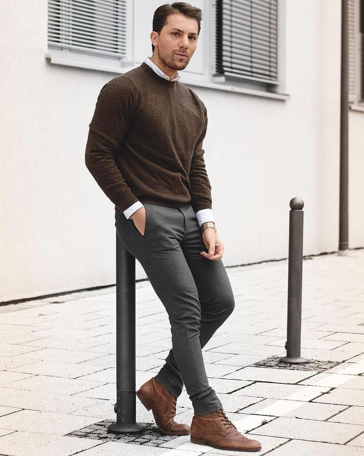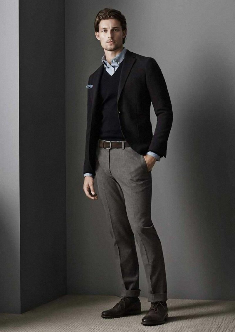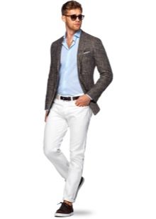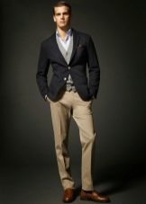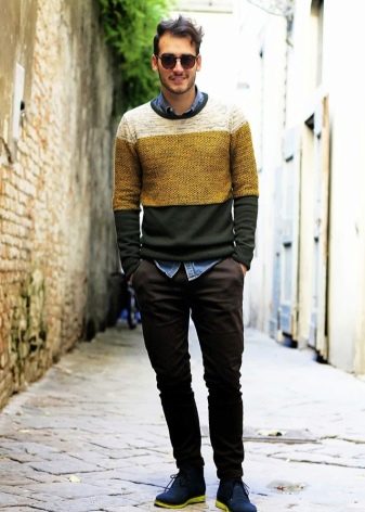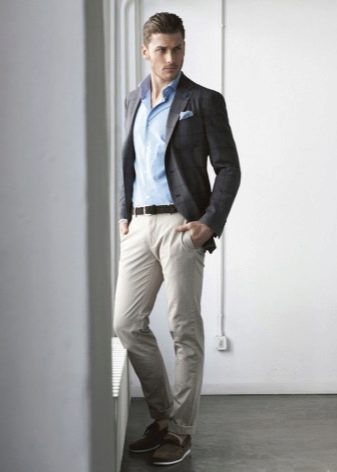 - Pantolon... Casual bir tarz için oklu klasik pantolonları tercih etmeyin. Chinos veya pantolonlar tercih edilir. İş yönü için bunlar kahverengi, mavi, gri, beyaz ve siyah tonlardır, Smart için daha koyu renkler seçebilirsiniz.