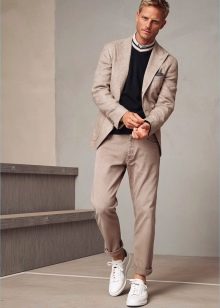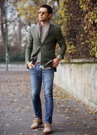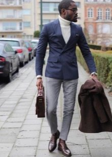 Süveter, kazak, kazak ve boğazlı kazaklar da bu yönde kabul edilebilir. Daraltılmış, ancak çok dar veya bol olmayan pantolonları seçmek daha iyidir ve ceket kot pantolonlarla kombinlenebilir.