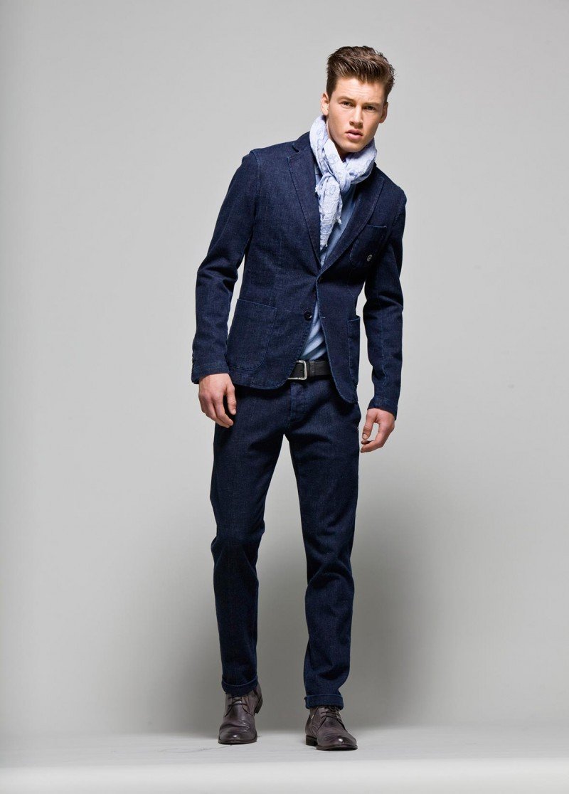 - Kot... Daha önce de belirtildiği gibi, kotlar bu tarzda, akıllı - hafif ve iş - koyu tonlar için kabul edilebilir.