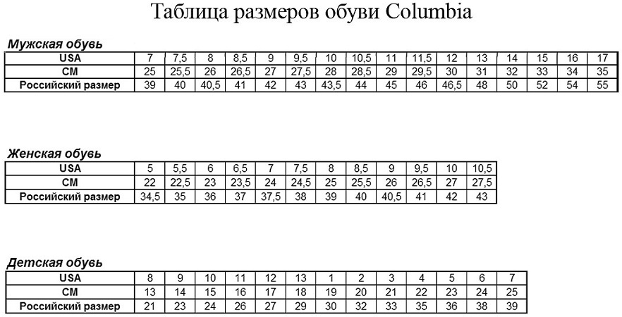 Columbia marka spor ayakkabı satın almadan önce ayağınızın detaylı ölçülerini almanız gerekmektedir. Özellikle satın alma internet üzerinden yapılacaksa. Ölçüler yapıldıktan sonra bunları markanın sunduğu beden tablosu ile doğru bir şekilde karşılaştırmak çok önemlidir. Yerel boyut ızgarasının her zaman Avrupa ve Amerikan markalarının boyut aralığıyla örtüşmediğini ve Columbia markasının bir istisna olmadığını hatırlamak önemlidir.