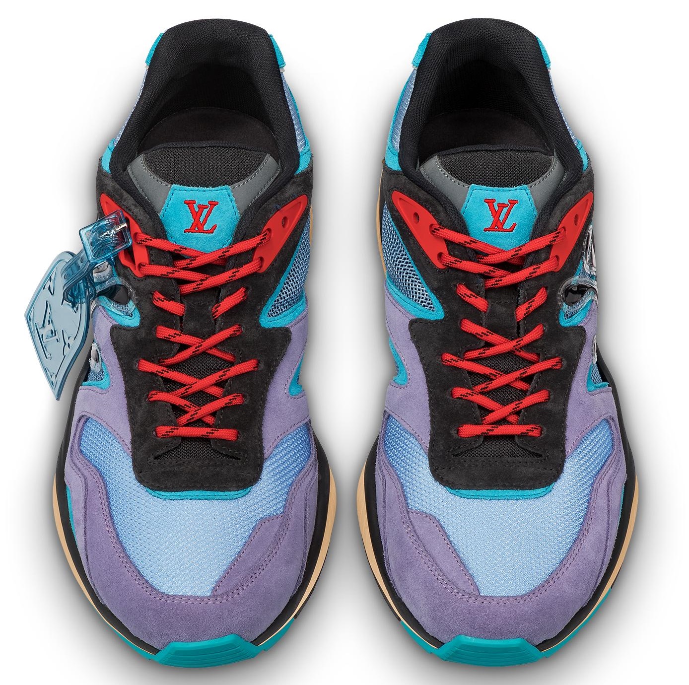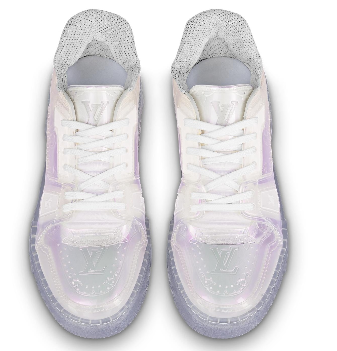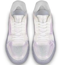 Parlak ürünleri sevenler LV Trail modeline bayılacak. Ürün yelpazesinin birkaç rengi vardır (sarı ve bej ile zümrüt, mavi ve siyah ile mor, gri ile beyaz, kırmızı ve mavi, vb.). Kadife dana derisi burada hafif file kumaşlarla birleştirilmiştir. Tabanda monogram çiçekler ve topuktaki Vuitton işlemeler detaylandırılmıştır.